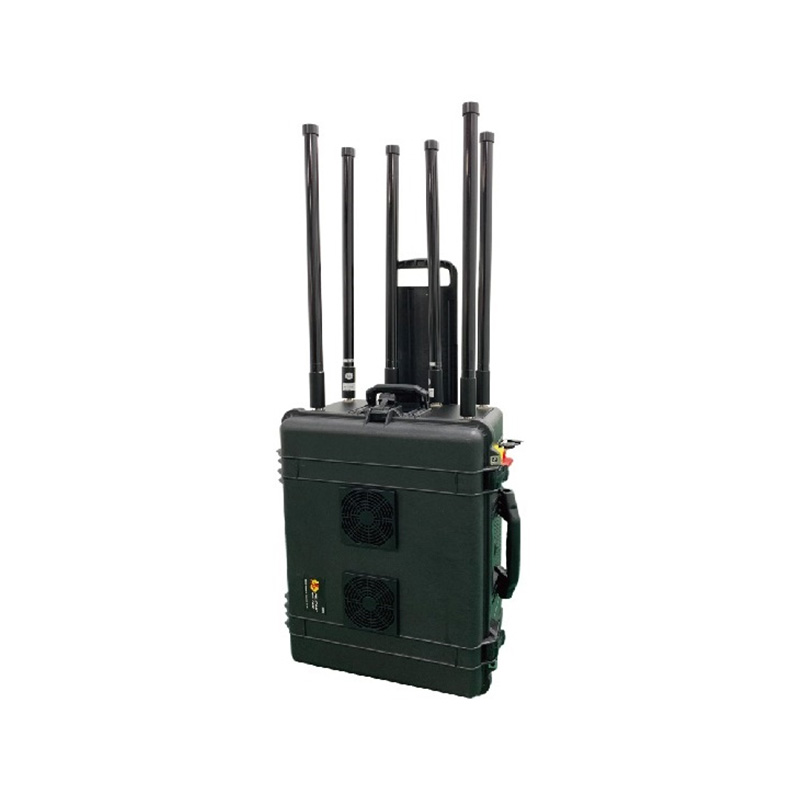 The one is professional Pelican Case portable High power mobile phone jammer for 5G 3G 4GLTE/WIMAX cellular phones, for LOJACK LORA Wi-Fi UHF VHF Signal Jammer which are currently presented on the market. Also is High power Drone Jammer model with 10 antennas which bring us a strong jamming ability. Build-in battery can work 60 minutes. And it can defend 100% drones UAVs, like Phantom 4, Phantom 3 Professional, advanced, standard series, inspire series,high output power anti-drone up to 1000 meters radius.