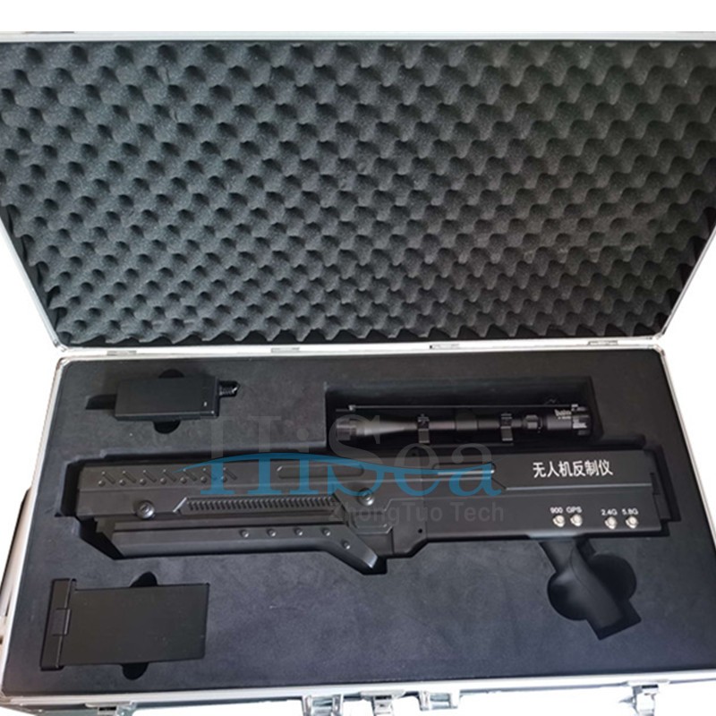 The device is one of the most popular drone jammers. The main part of the product adopts the portable box design, which is convenient to move. Gun type aiming accessories for easy use and to aim at. In recent years, governments around the world have begun buying large amounts of such equipment to control drones. Such products have been used repeatedly at World Economic Forum to maintain order. Has an auxiliary lighting sight, it can block drones well even at night. It can effectively jam all drone signals, even military drones. This product has a very large jamming range and high jamming accuracy, can shoot down the high altitude unmanned aerial vehicle. The maximum range of jamming is up to 1500 meters. All kinds of drones can be shot down quickly. It can be used either in response to terrorist drone attacks. Can effectively defend against drone assassination. We accept the latest military uav jammer customization. It can block , BeiDou and GLONASS signals at the same time and effectively target the latest military drones.